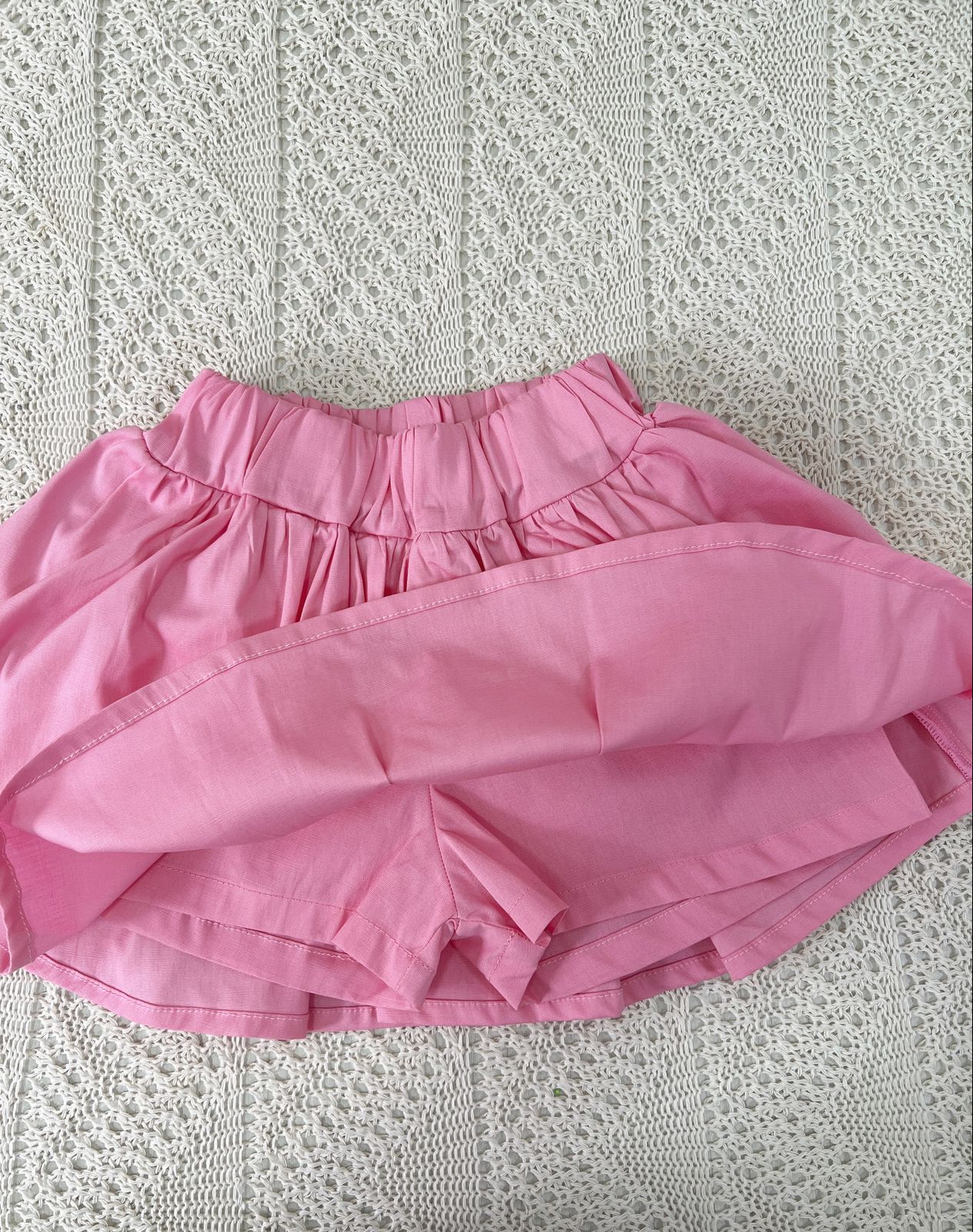 Hermoso conjunto de crop top elaborado en piel de durazno forrado en doble tela para mayor calidad, estampados exclusivos de la marca decorados con pedrería; y falda en popelina con short interno.