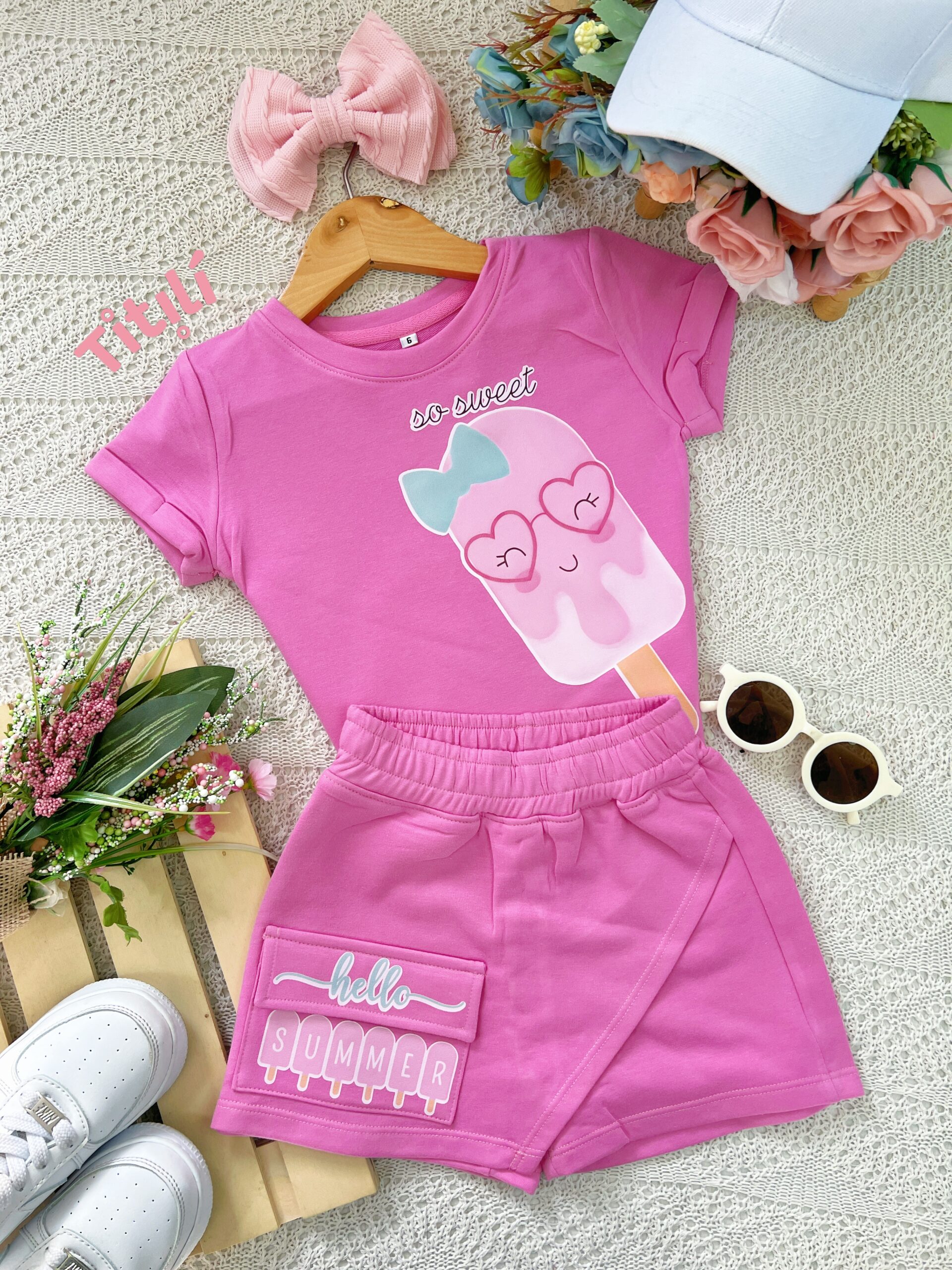 Set de dos piezas elaborado en burda licrada de la mejor calidad, con estampado en blusa y short en técnica DTF.
