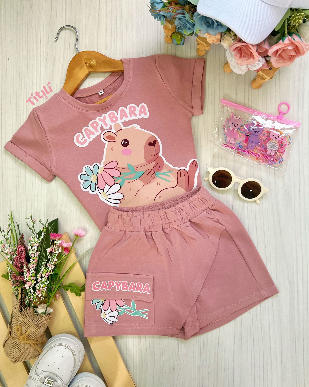 Set de dos piezas elaborado en burda licrada de la mejor calidad, con estampado en blusa y short en técnica DTF.