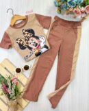 Pantalón con bolsillos y camiseta, elaborados en Rib 100% algodón, con combinados laterales y estampado en técnica DTF.