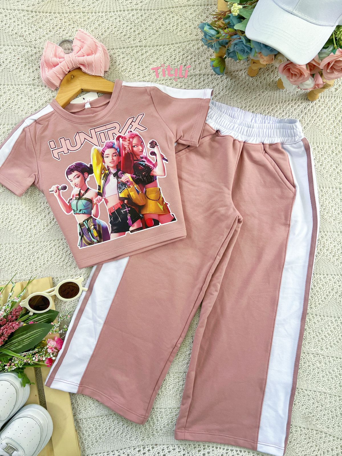 Pantalón con bolsillos y camiseta, elaborados en Burda licrada, con combinado blanco y estampado en técnica DTF.