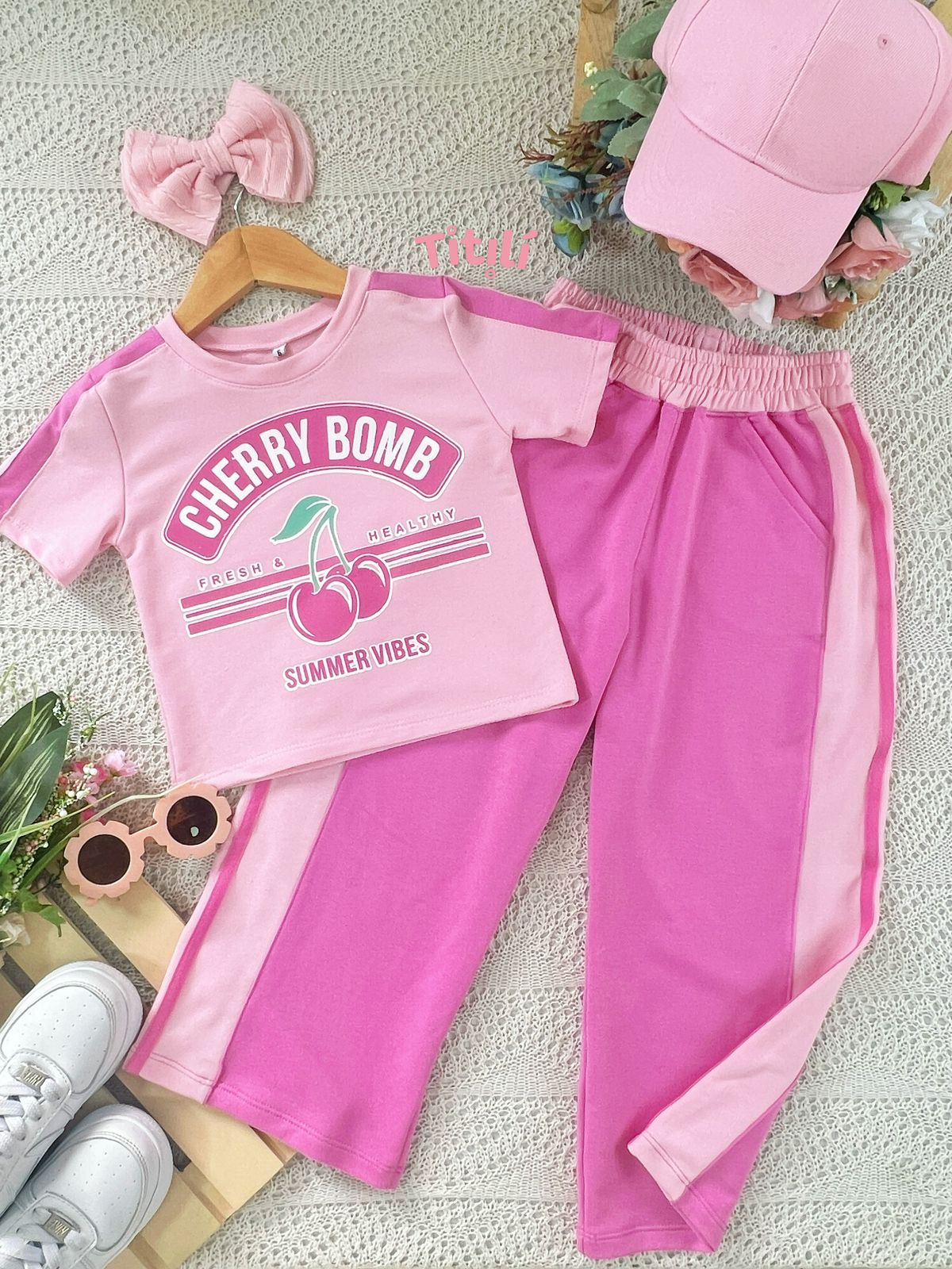 Pantalón con bolsillos y camiseta, elaborados en Burda licrada, con combinado blanco y estampado en técnica DTF.